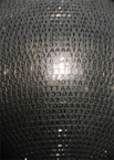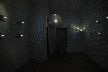 | In dem abgedunkelten Raum scheinen auf zehn Mini-LED-Laufschriften fließende Wortfragmente zu schweben. In gegenläufiger Richtung spiegelt eine motorbetriebene Spiegelkugel eine unendliche Folge von vier Buchstaben, diese legen sich wie ein fließender, flüchtiger immaterieller und kryptischer Text über den Raum. Bei dieser schein- bar willkürlich gesetzten Kombination handelt es sich um eine Sequenz des genetischen Human Codes. Auf jedem der 4500 Einzelspiegel wurde je ein Buchstaben der variierenden Gen-Basenfolgen „A‘C‘T‘G“ eingraviert. Ein Ausschnitt eines genetischen Portraits. Diese zwei gegenläufig laufenden Sprachflüsse – der Kugel und der LEDs – provozieren beim Besucher eine physische Verunsicherung der herkömmlichen Wahrnehmungs muster. Zurück bleibt ein taumelnder Betrachter, der sich seiner selbst physisch nicht mehr sicher ist